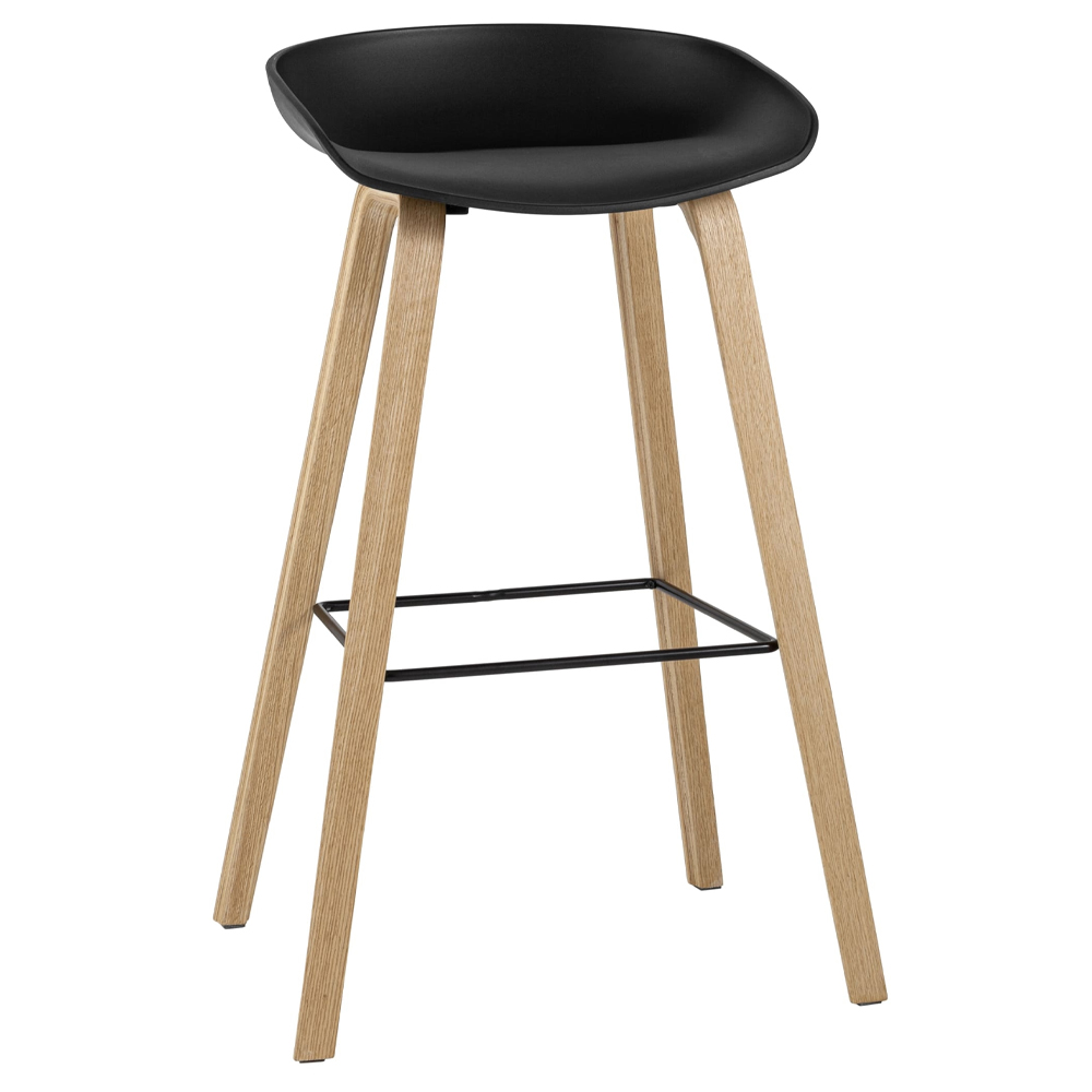Купить барный стул на ножках из натурального дерева Boras Black – это выбрать модель черного цвета, которая создана из пластика и дерева.