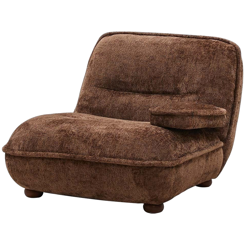 Кресло без подлокотников коричневое ну круглых деревянных ножках Loup Plush Armchair Brown
