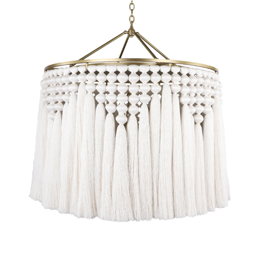 Люстра белая плетеная с кисточками Boho Tassel Chandelier