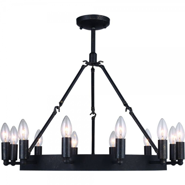 Сельского стиля, простую по форме и величественного размера, нашу люстру ручной ковки разработал промышленный кузнец John Sarriugarte. Черпая вдохновение из ранних индустриальных светильников 20-го века, он создал свою люстру из толстого углового железа.