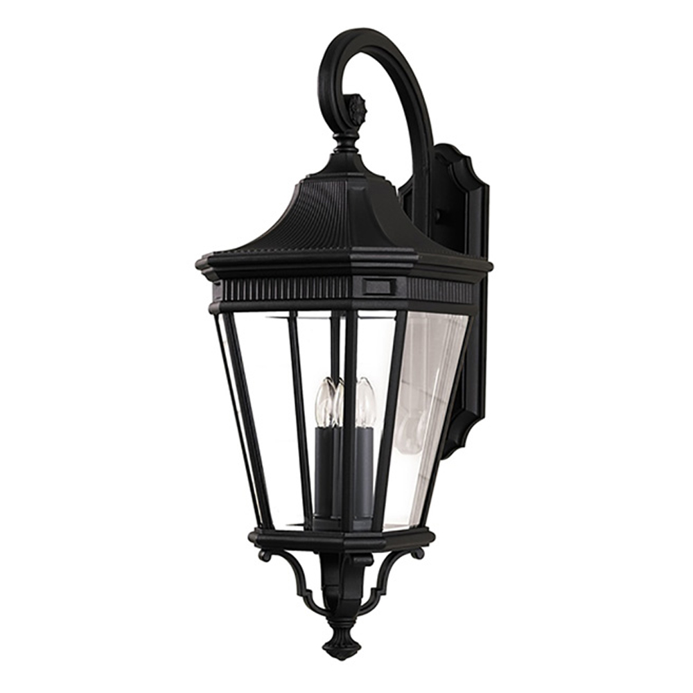 Настенный фонарь Elstead Lighting FE-COTSLN2-L-BK из коллекции Cotswold Lane. Отличительной чертой светильника является декоративный молдинг над панелями из прозрачного стекла с фацетом. Эта деталь усиливает более традиционную, строгую эстетику, дизайн которой вдохновлен старинными газовыми фонарями. Основание в отделке - Черный. Можно использовать при уличном освещении, степень защиты IP44.