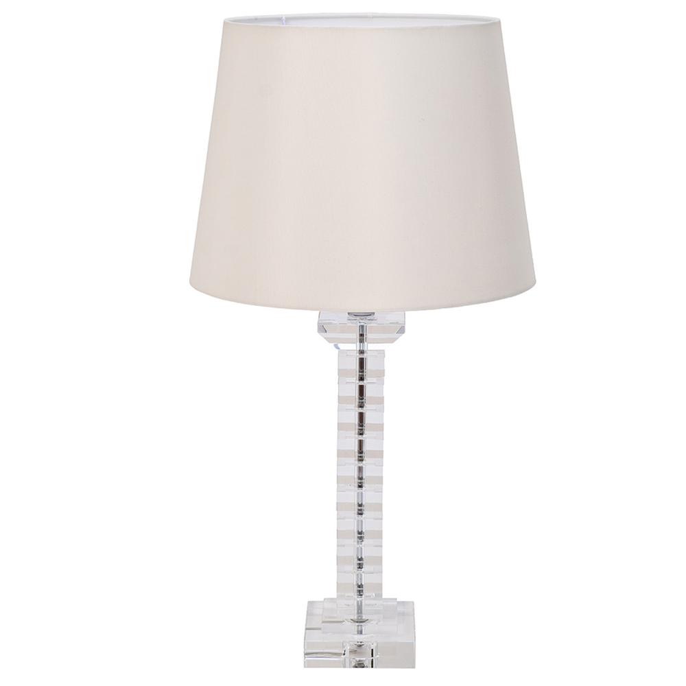 Настольная лампа с кремовым абажуром на фактурном стеклянном основании Source