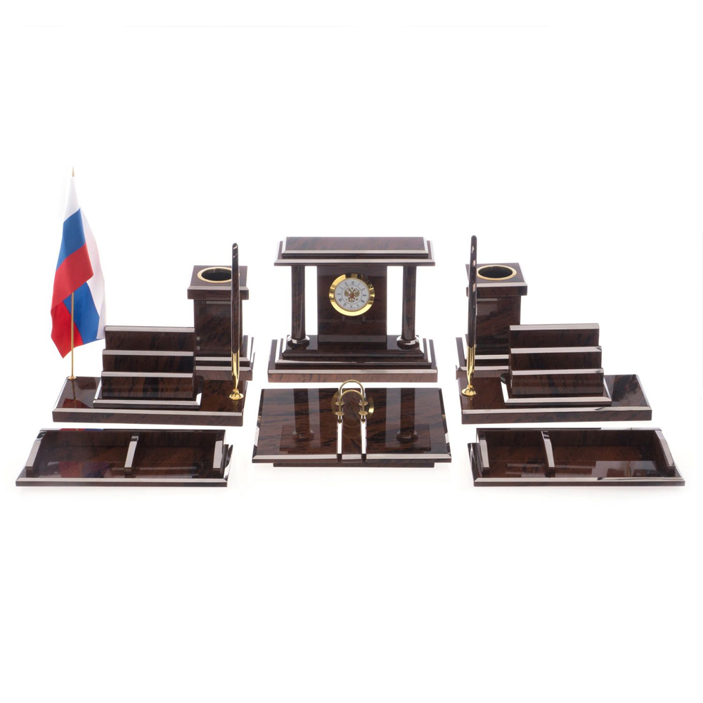 Настольный письменный набор из природного камня обсидиана Team leader Коричневый Бронза во Владивостоке | Loft Concept